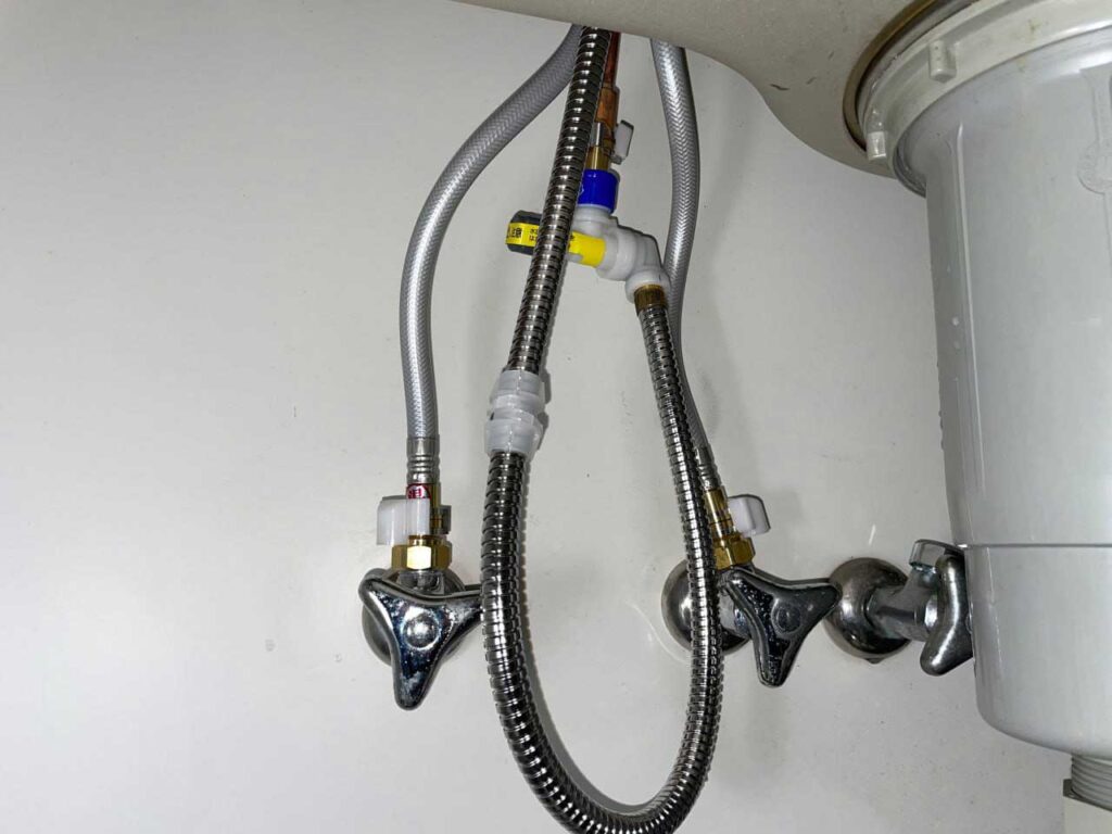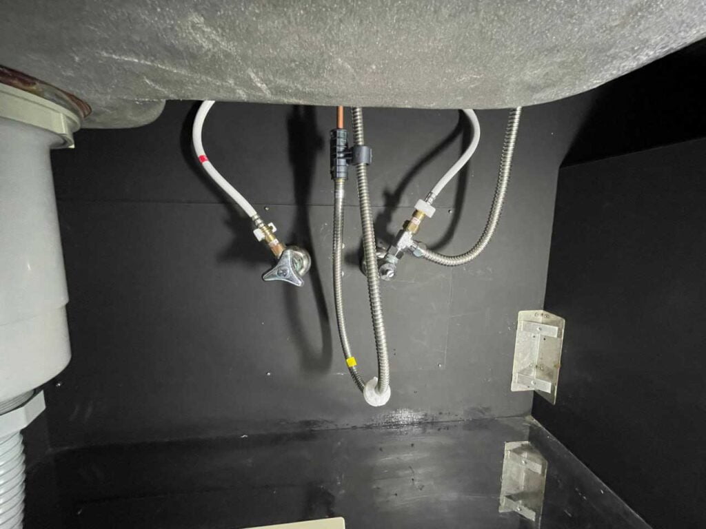 キッチンの水漏れでのご相談です。キッチンの状況を確認させて頂くと、止水栓の付近から水漏れが発生していることが確認できました。止水栓の交換を完了し、水漏れが解消致しました。 -