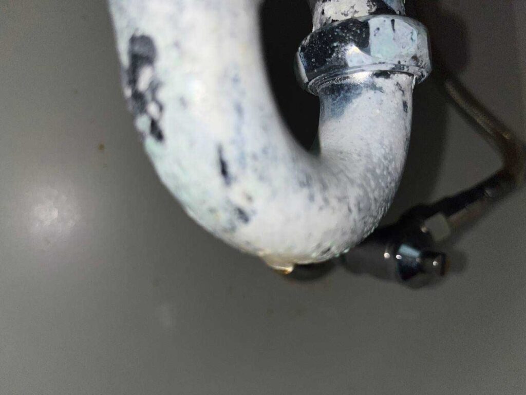 トイレにある手洗い場から水漏れでのご相談。水漏れ箇所の確認をしたところ、排水管から水漏れ。排水管(排水トラップ)の交換を完了し、水漏れが解消しました。ご依頼ありがとうございました。 -