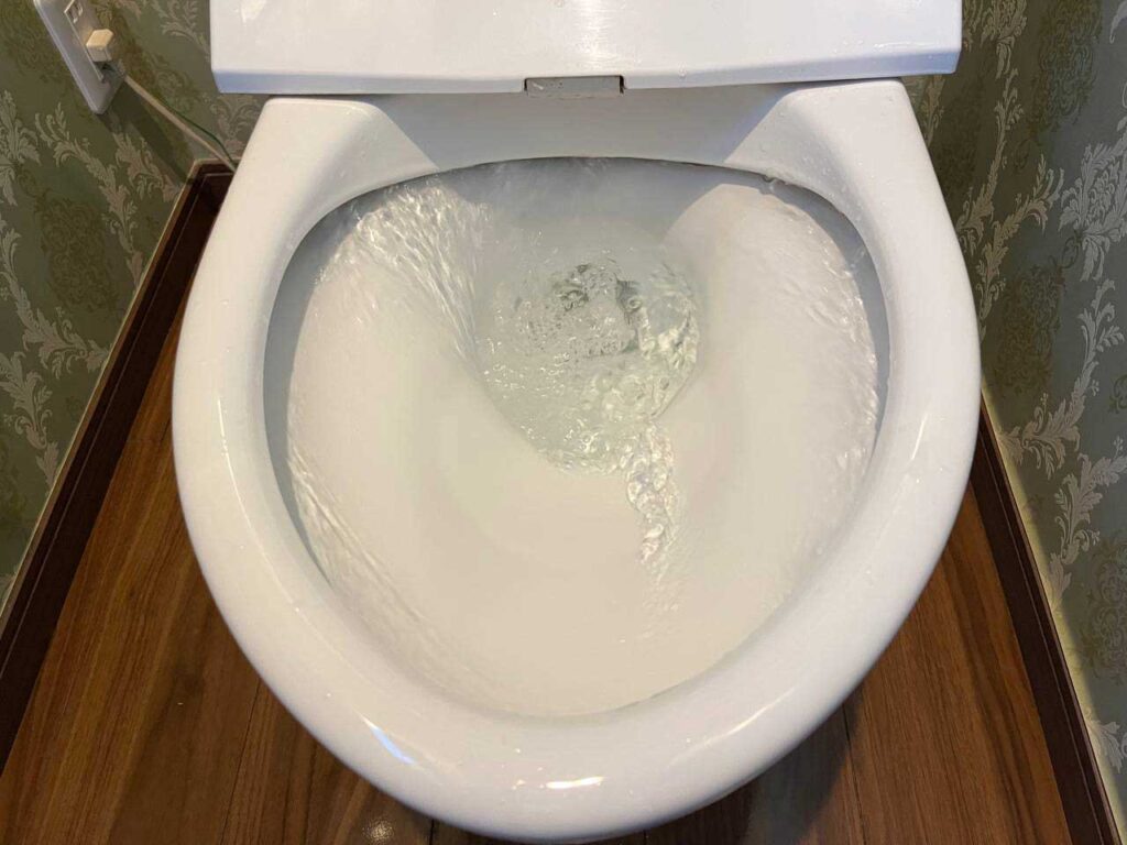 トイレの詰まりでご相談。トイレットペーパーを大量に使用してしまったことが、つまりの原因のようです。トイレの詰まりを解消するために、高圧洗浄をご提案。ご了承頂きましたので、作業を開始しました。高圧洗浄を終え、流れが問題ないことをチェックして、掃除を済ませ無事完了です。 -