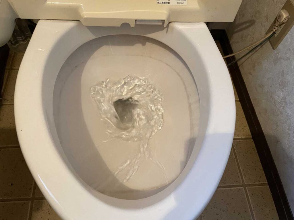 トトイレの詰まりでご相談。詳しくお聞きすると、トイレットペーパーをかなり多く流してしまったとの事でした。トイレの詰まりを解消するために、高圧洗浄をご提案。ご了承頂きましたので、施工させて頂きました。ありがとうございました。 -