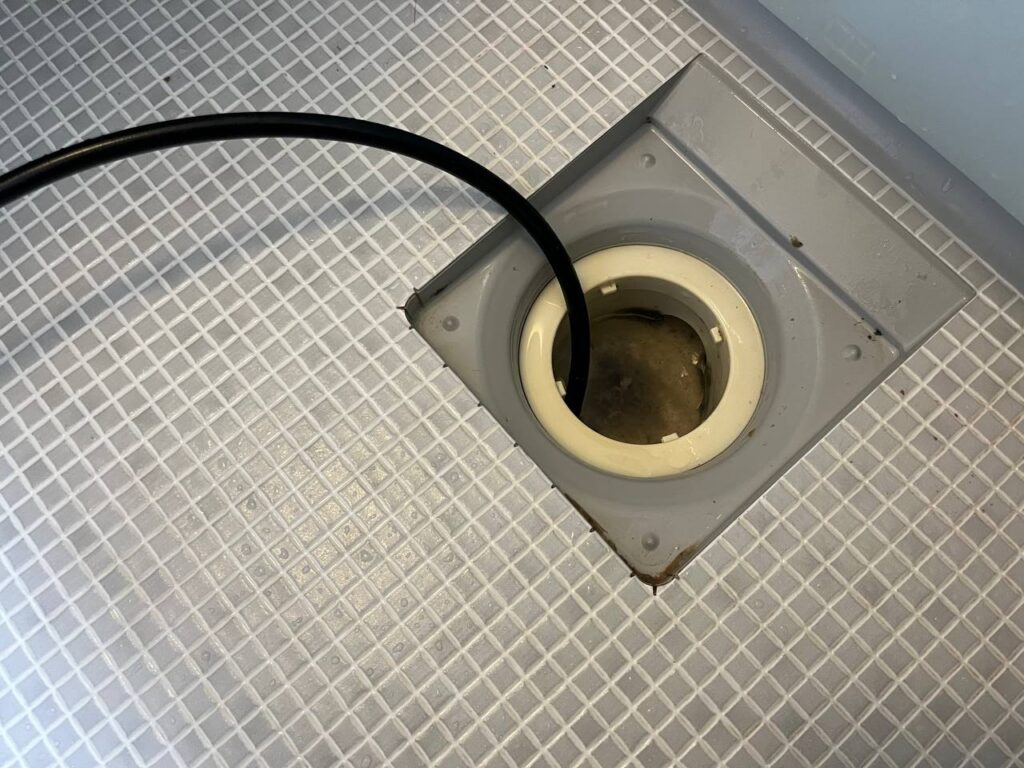 お風呂での詰まりでご相談。排水管の詰まりを高圧洗浄にて解消しております。お風呂の詰まりの原因は、主に髪の毛、石鹸カス、皮脂汚れなどです。排水溝の清掃をこまめにすることをオススメします。